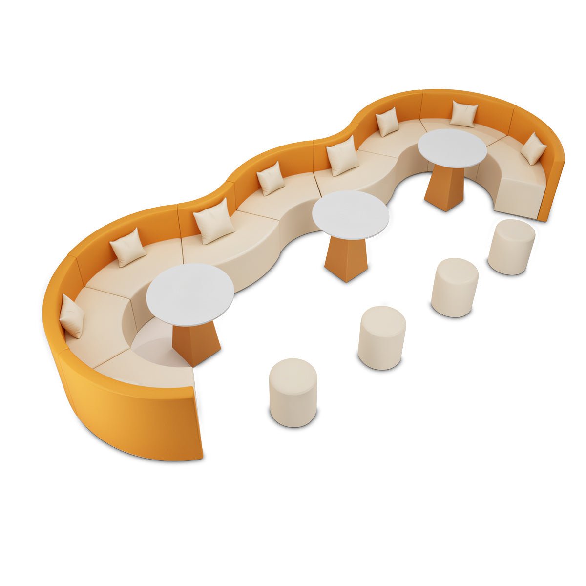 Single Sofa, Single Seat Without Backrest, Round Coffee Table, Round Stool |