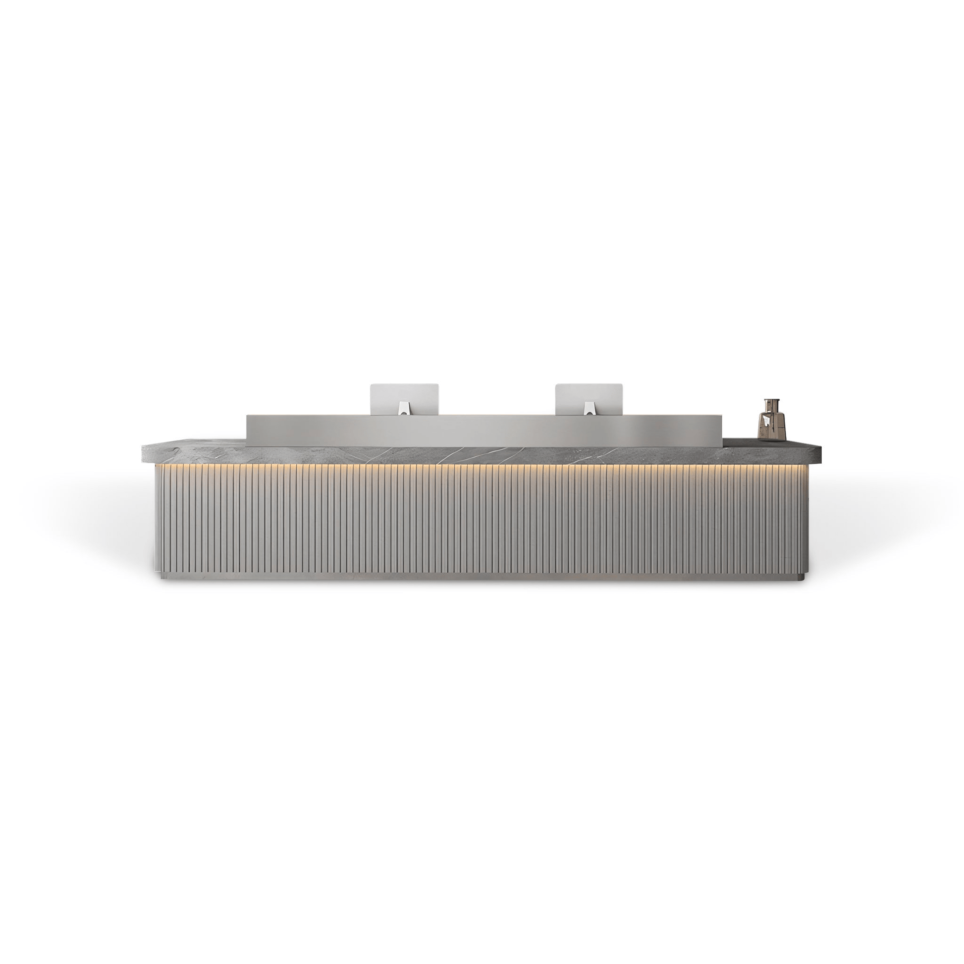 | The Furnavo reception desk arrives fully assembled and features built-in LED lighting for a clean, modern look. Its stainless-steel countertop adds durability and a refined touch, while the storage compartments help keep the workspace organised. A practical and stylish choice for offices, hotels and other professional settings. |