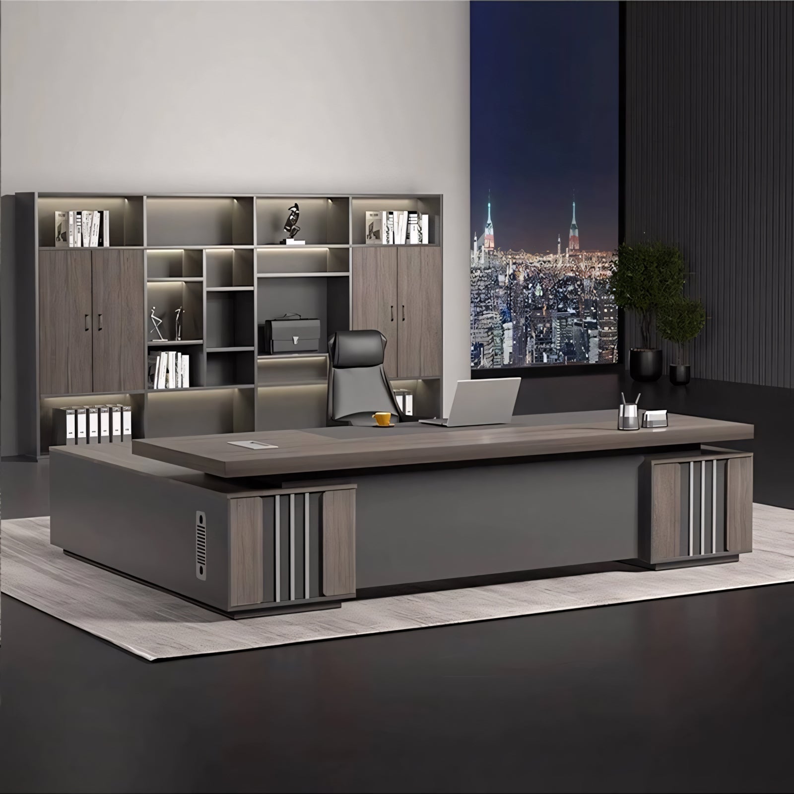 Furnavo Minimalist Executive Office Desk – Workstation with Dual Cabinets