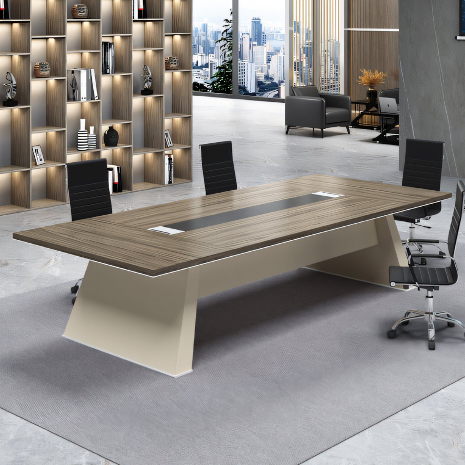 Furnavo Walnut Conference Table – Modern Office Meeting Table in Rich Wood Finish
